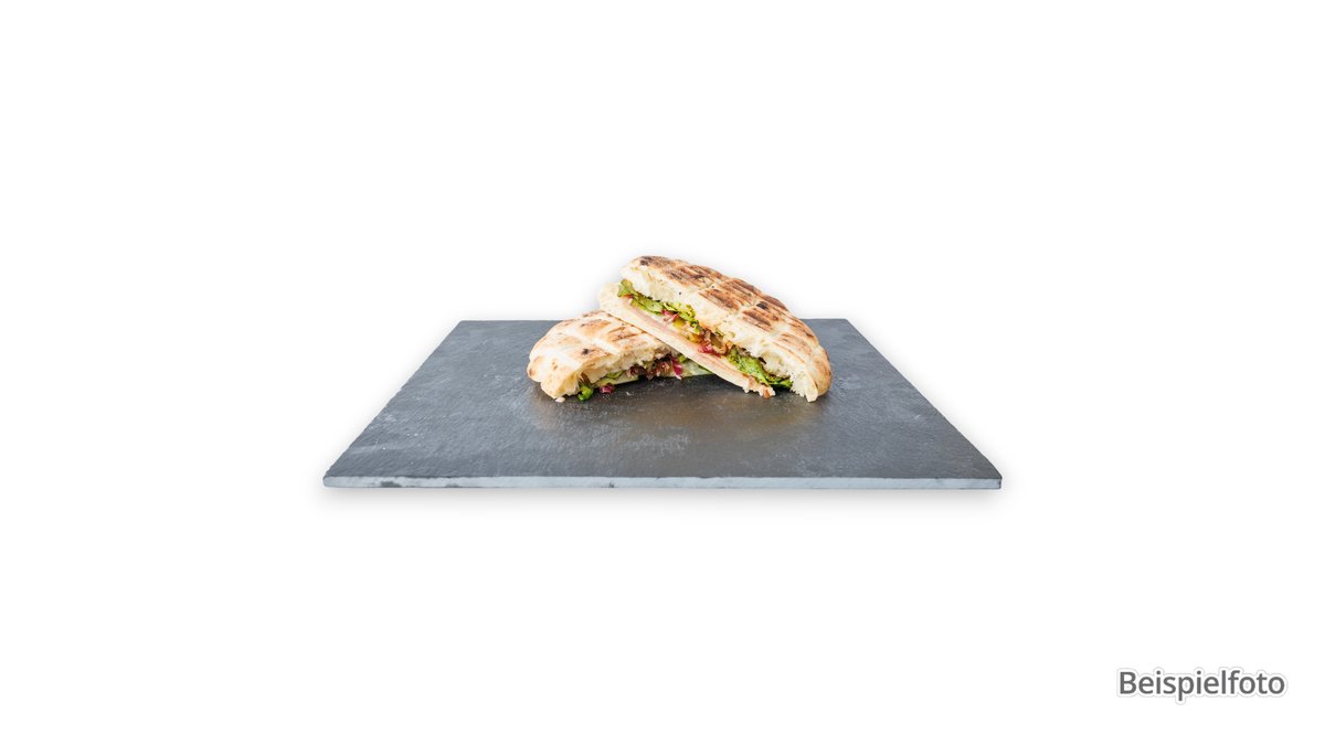 mit 3x Scheiben getoastetem Baguette, Würfel Schafskäse und Grillgemüse