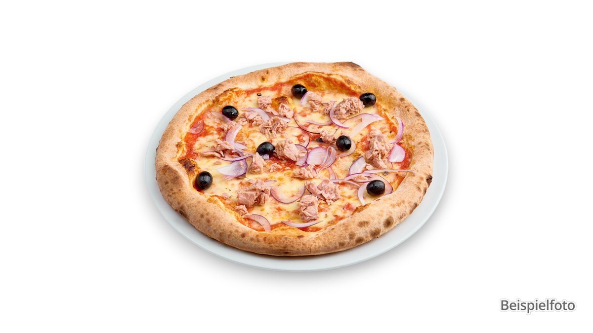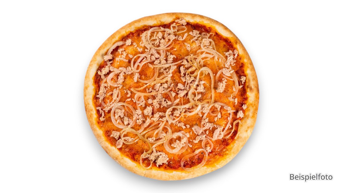 mit Tomatensoße, Käse, Thunfisch, Zwiebeln und Paprika