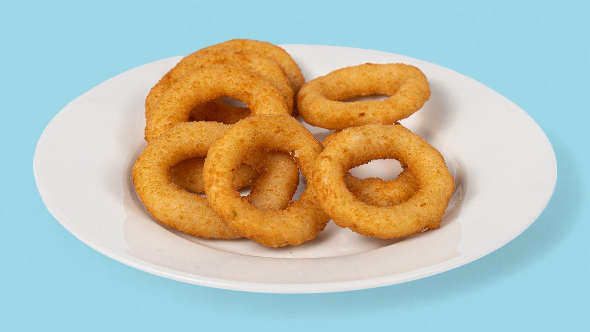 Zwiebelringe aus frisch geschnittenen Zwiebeln, überzogen mit einer Knusperschicht.
