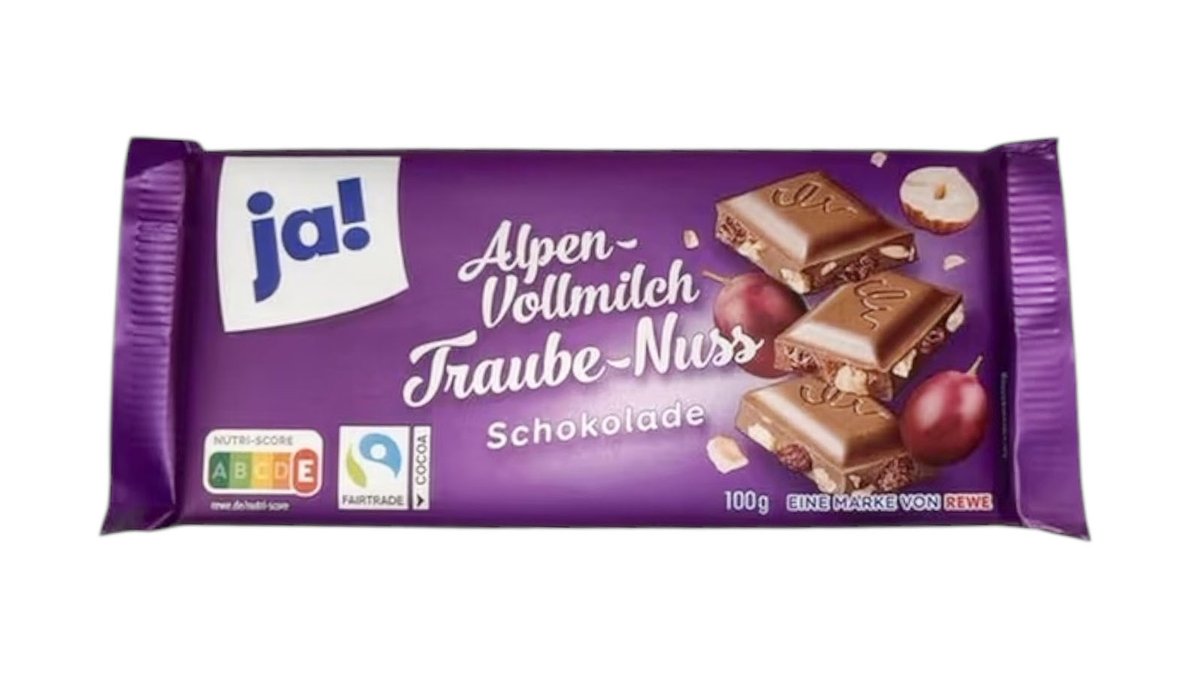 ja! Alpenvollmilch Schokolade Traube Nuss, 100 g