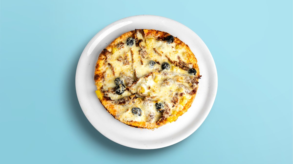 mit Dönerfleisch, Peperoni, Oliven und Tsatsiki