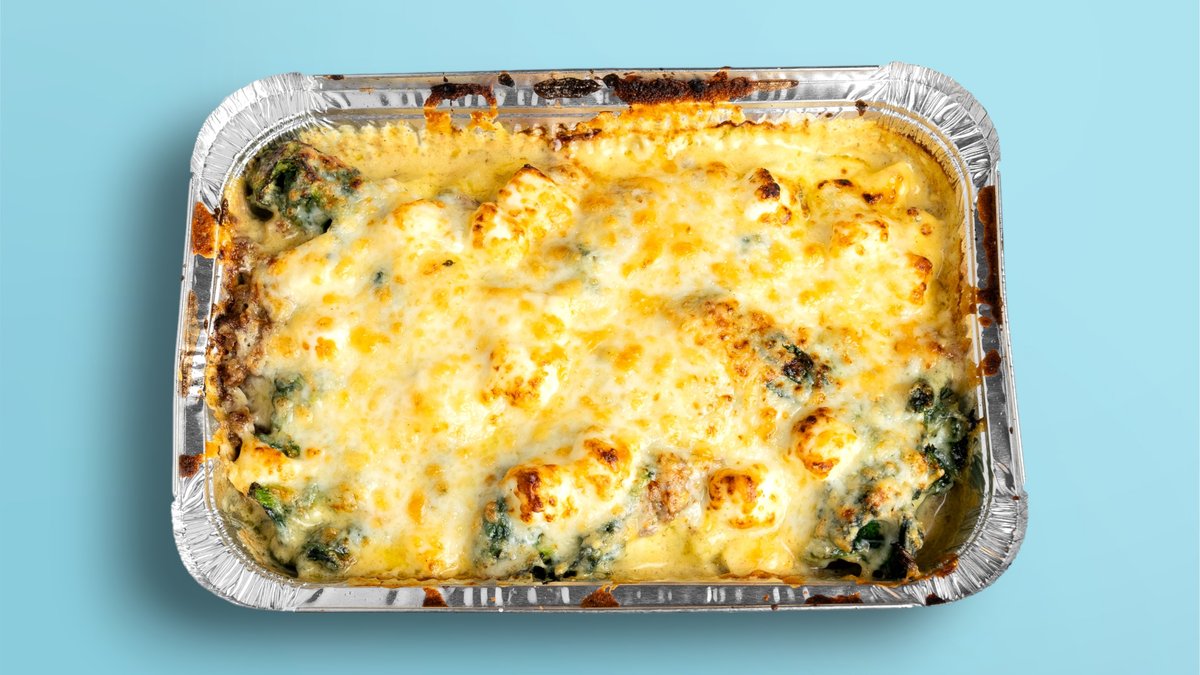 mit Kartoffeln, Spinat, Hirtenkäse, Hackfleisch vom Rind, Knoblauch und Käse-Sahnesoße