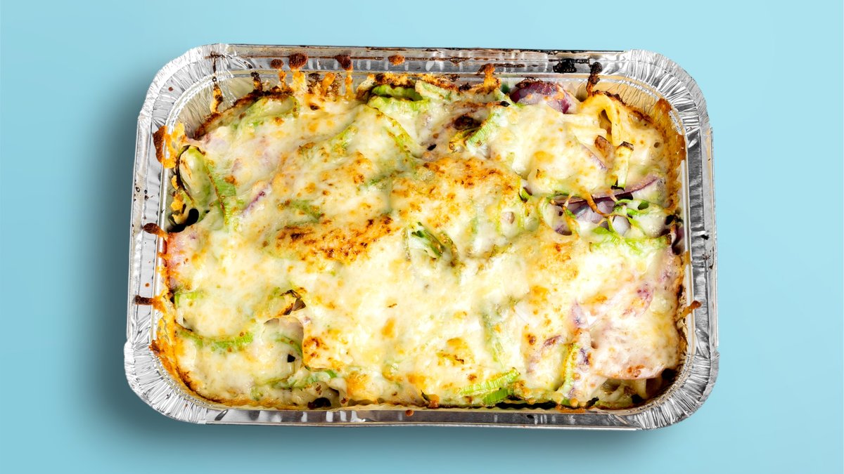 mit Nudeln, Paprika, Gyros, Tomaten, Zwiebeln, Tsatsiki, Käse-Sahnesoße und Mozzarella überbacken