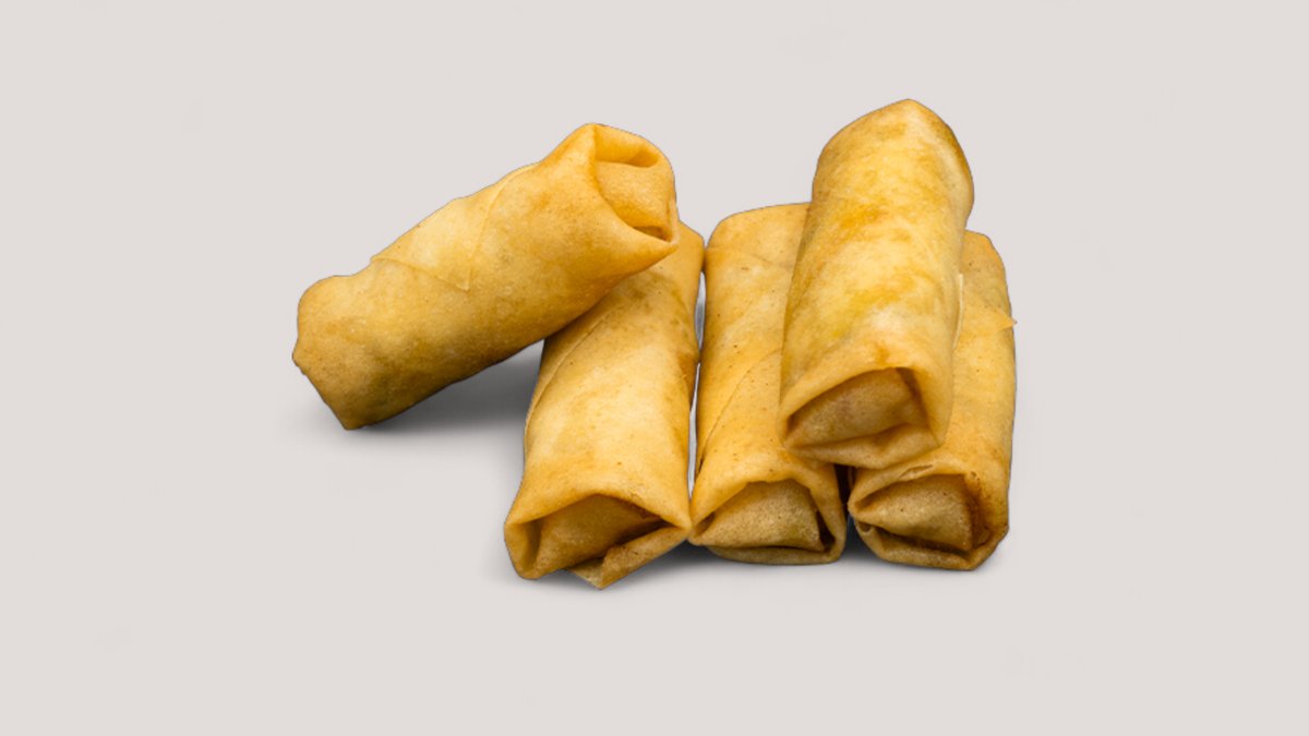 4 Stück frittierte Teigtaschen gefüllt mit Huhn und Gemüse und einer Soße deiner Wahl