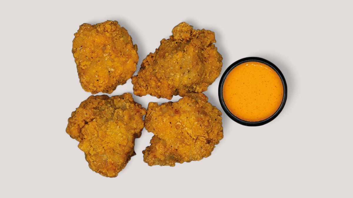 knusprig frittiertes Hähnchen mit einer Soße deiner Wahl