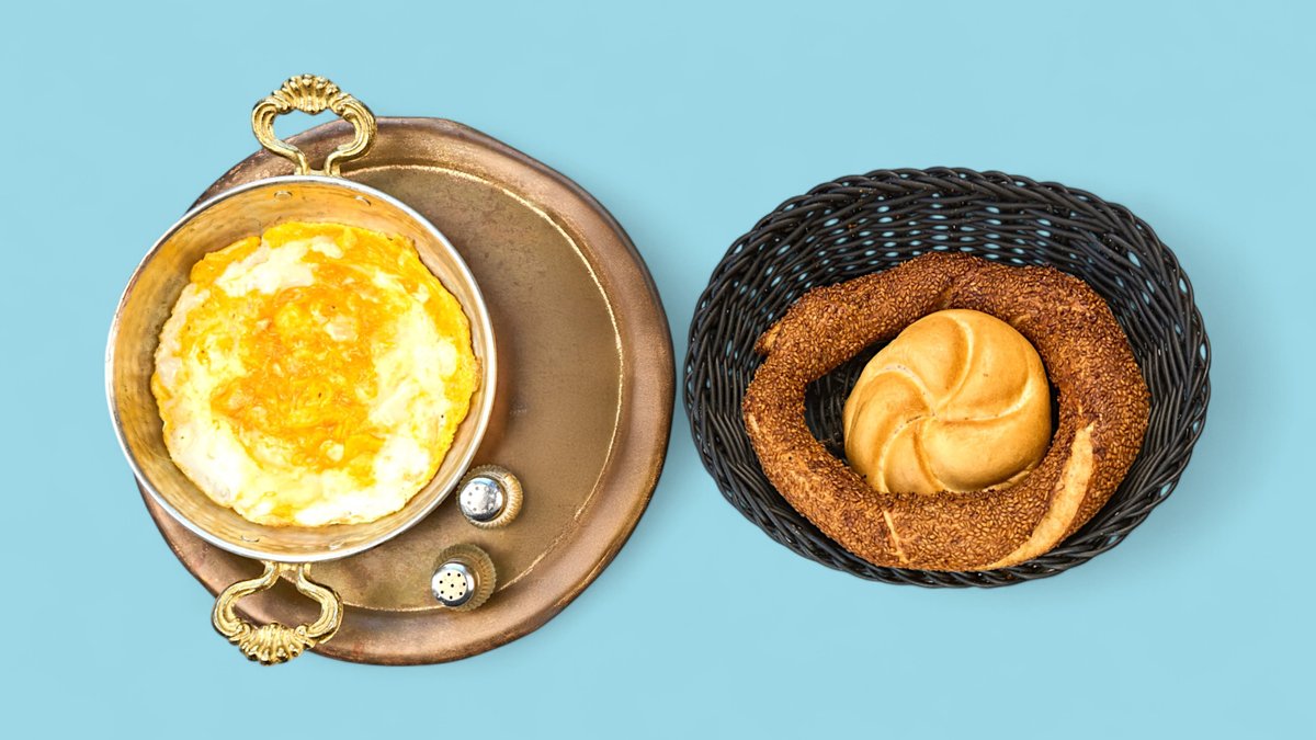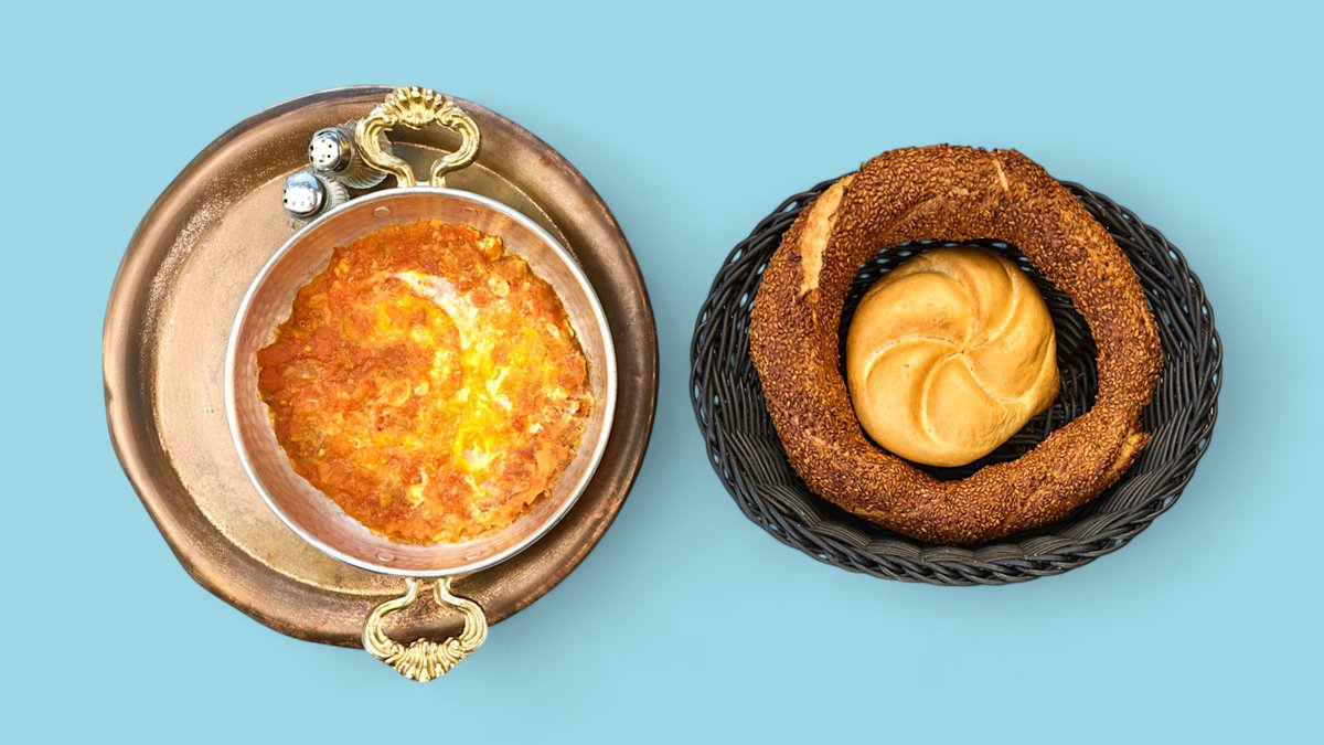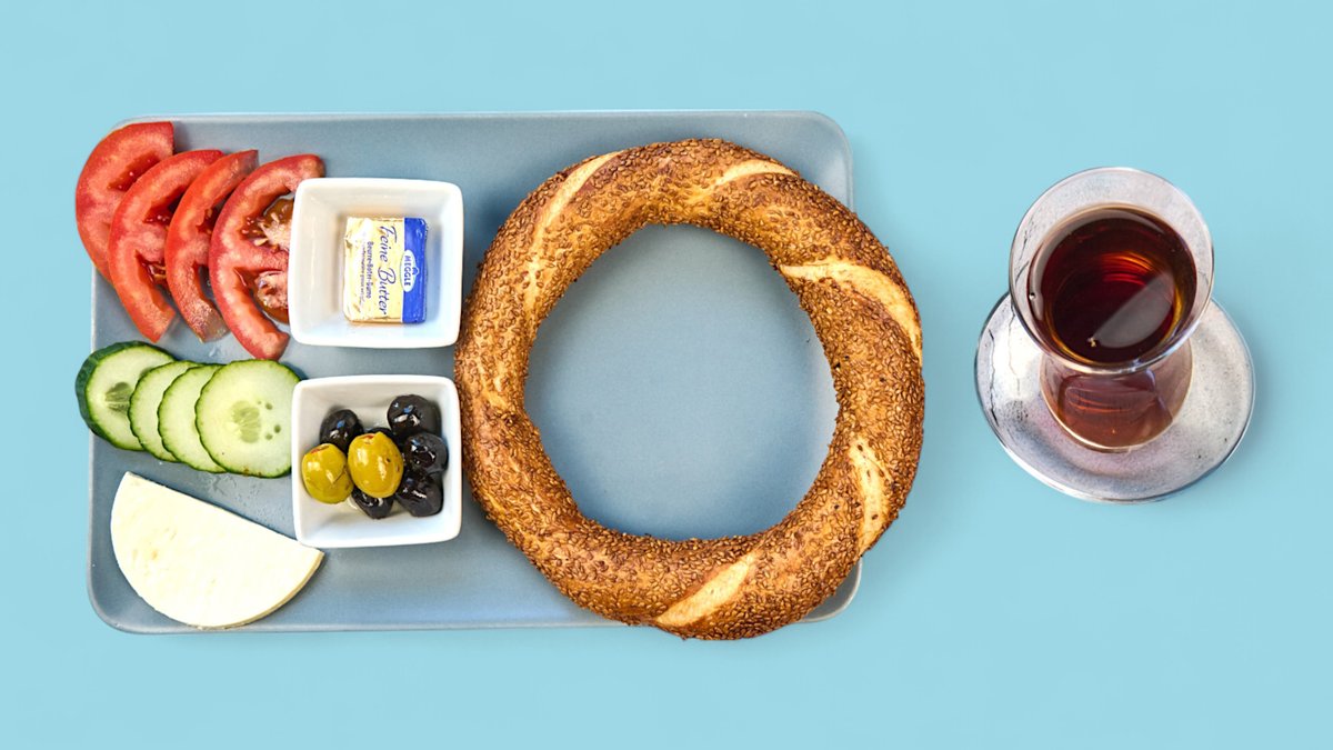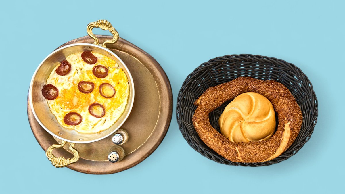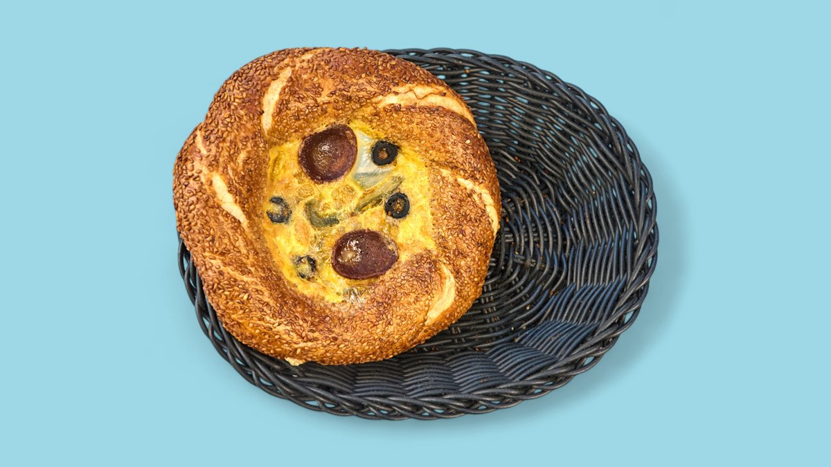 Simit mit Ei, Käse, Oliven, Sucuk und Paprika