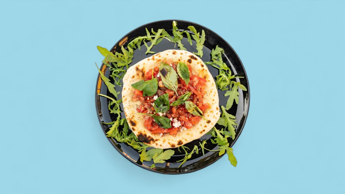 mit Büffelmozzarella, Rucola, Basilikum und Balsamicocreme