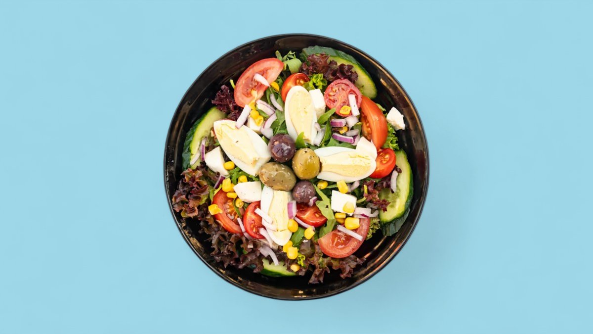 mit Hähnchenbruststreifen, Kirschtomaten, Mais und Oliven mit Stein
