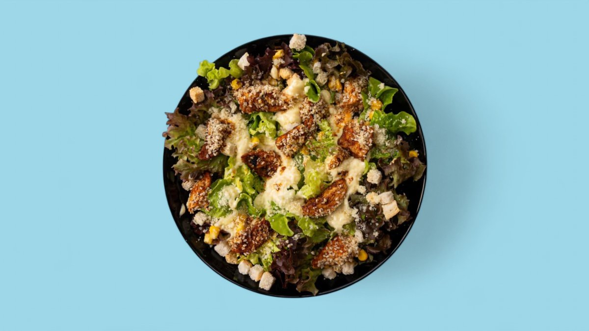 mit Hähnchenbruststreifen, Mais, Croutons und Parmesan