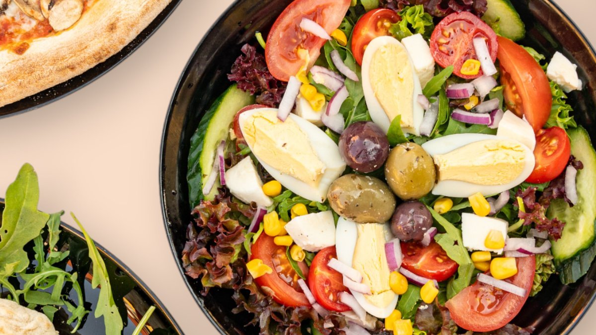 alle Salate werden mit Gurken, Tomaten, gemischtem Salat und einem Dressing deiner Wahl zubereitet („Caprese“ und „Insalata Rucola“ werden ohne Gurken und gemischten Salat zubereitet und „Caesar Salat“ wird ohne Gurken und Tomaten zubereitet)