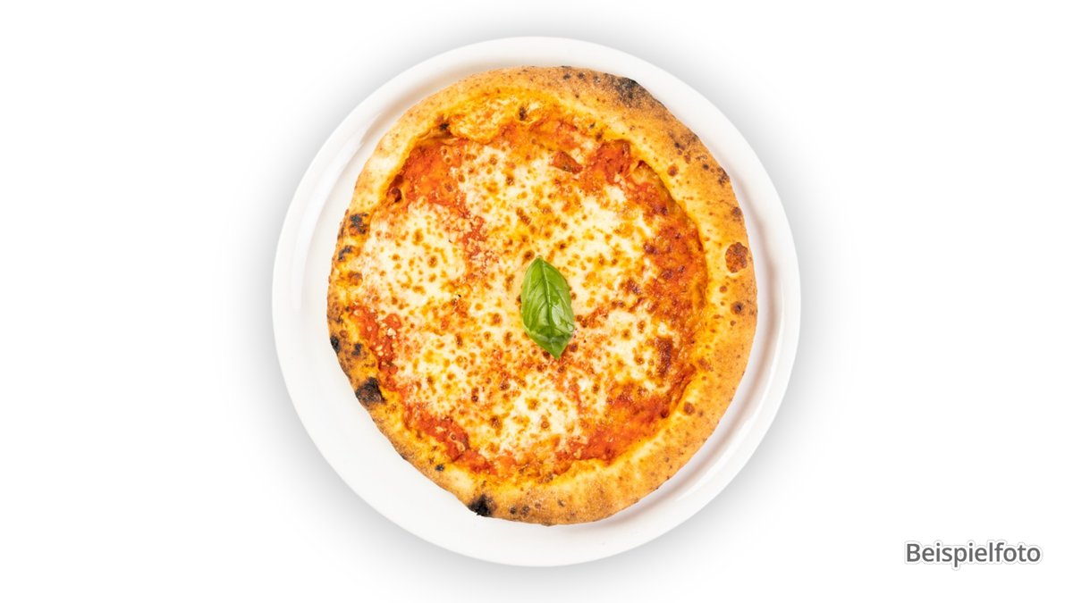 alle Pizzen werden mit Tomatensoße und Mozzarella zubereitet ("Pizza Quatro Formagi" wird ohne Tomatensoße zubereitet) und sind je nach Wunsch ca. 26 cm oder 32 cm groß