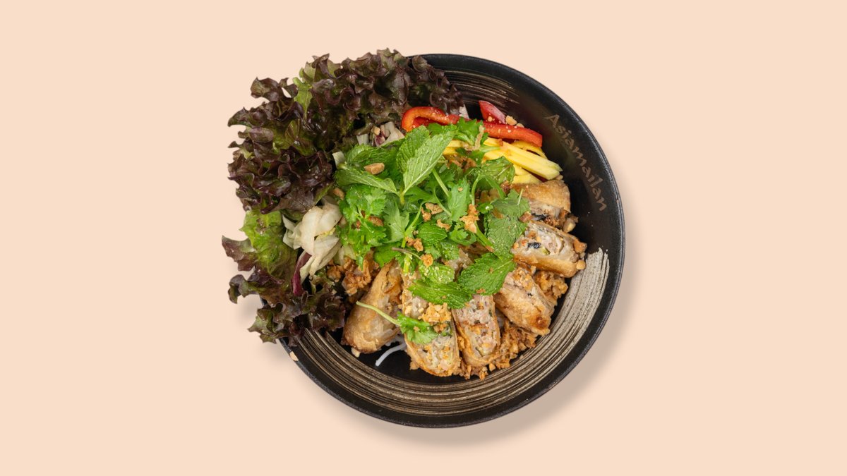 3 Stück hausgemachte Frühlingsrollen mit Schweinefleisch, Glasnudeln und Gemüse