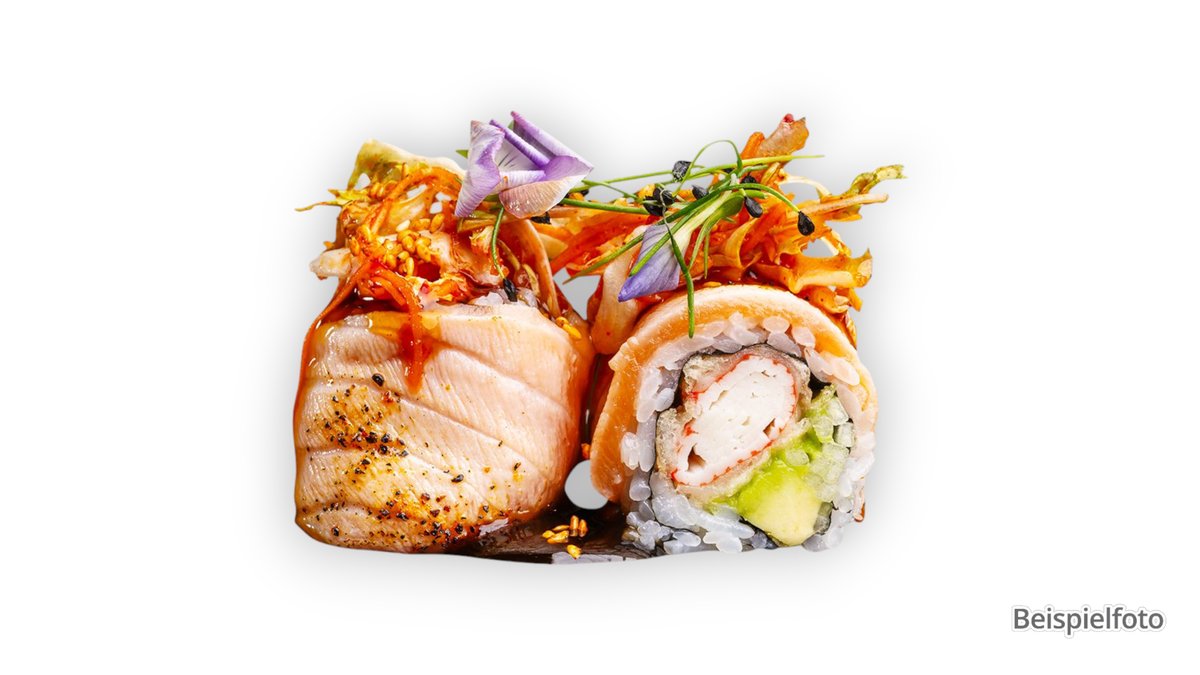 mit Surimi, Avocado, Lachs, Tobiko, Aal- und Tsukisoẞe