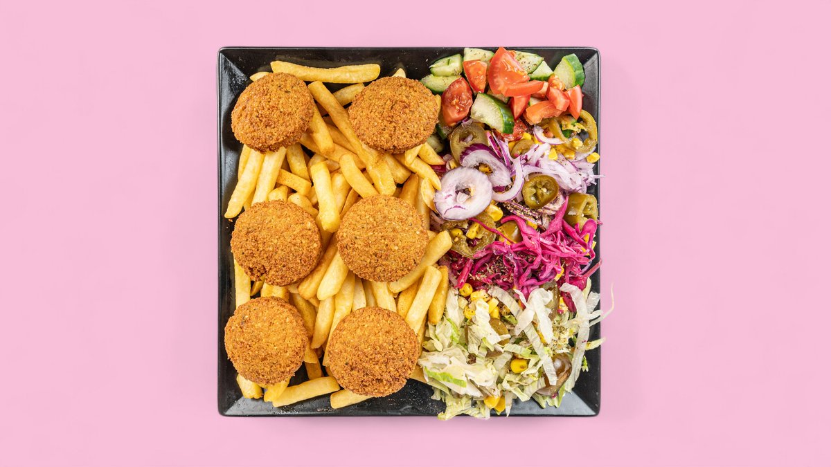 alle Gerichte werden mit Eisbergsalat, Tomaten, Gurken, Zwiebeln, Rotkohl Paprika, Mais, Soße und Salat zubereitet („Falafel Wrap” wird ohne Salat zubereitet)