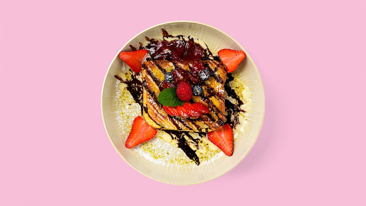 Brioche, Nutella, frische Erdbeeren und Erdbiersoße