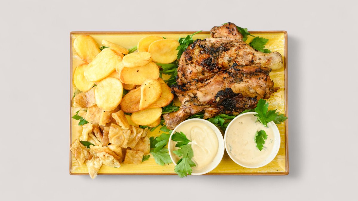 gegrilltes Hähnchen-Shawerma mit geschichtetem Brot, Reis und Knoblauchsoße