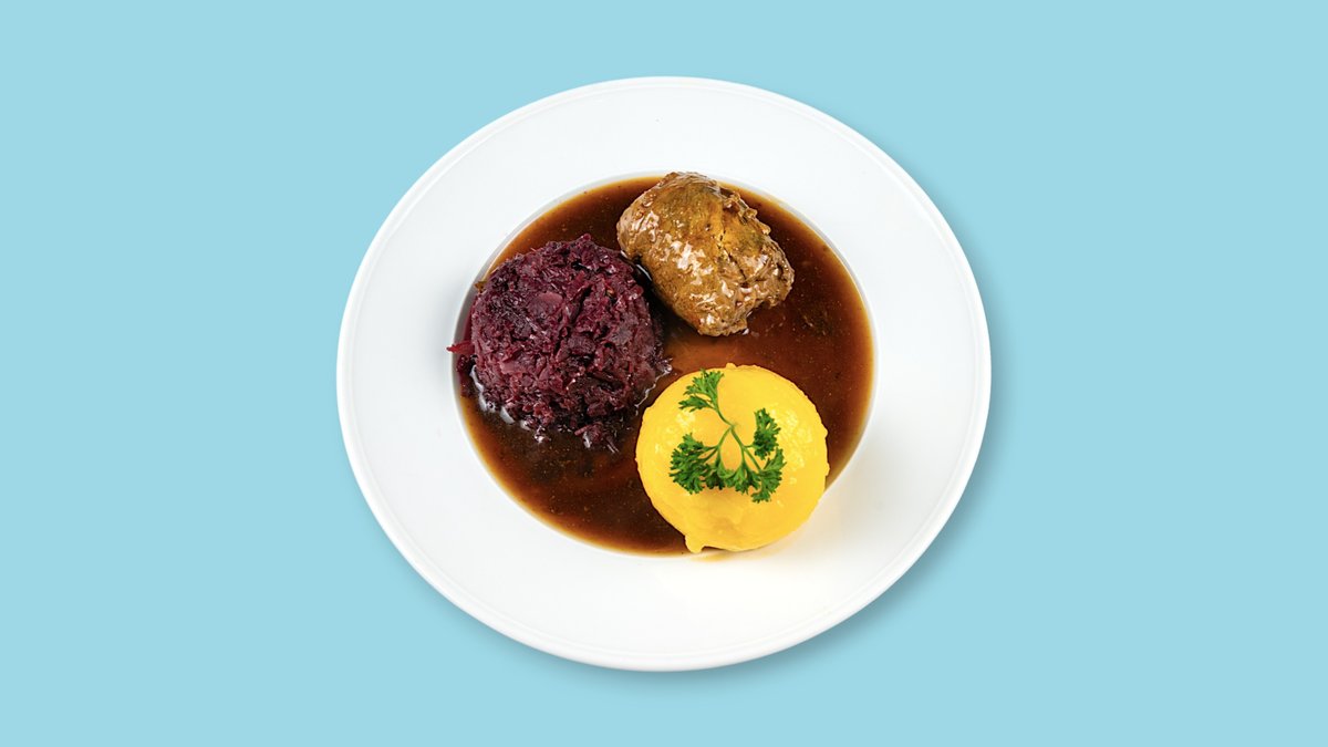 Rinderrouladde mit Kloß, Soße und Blaukraut