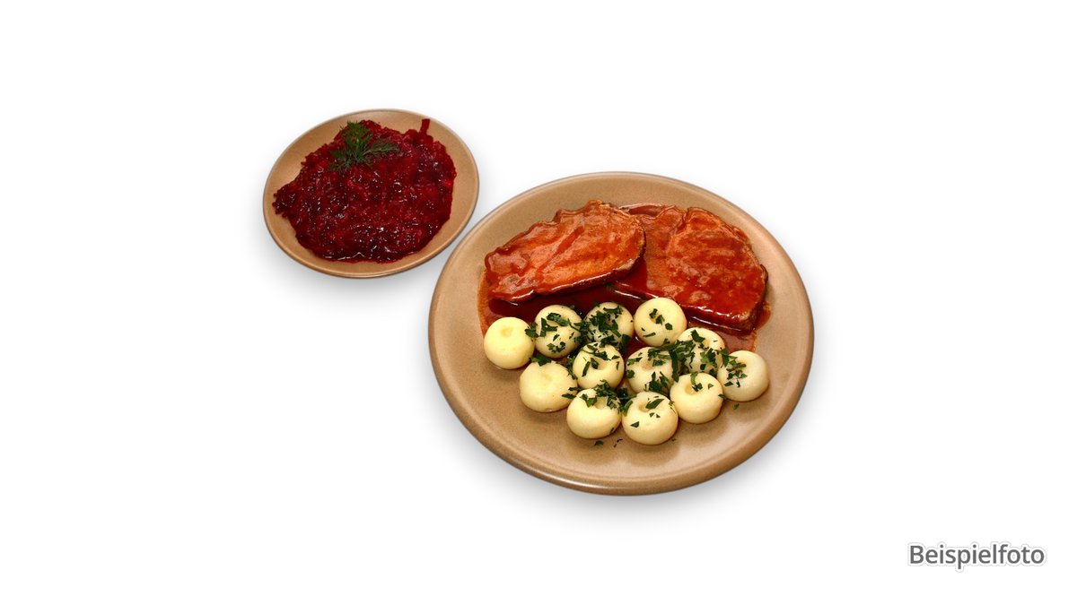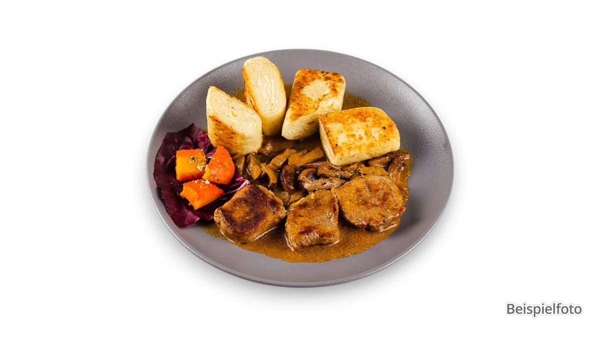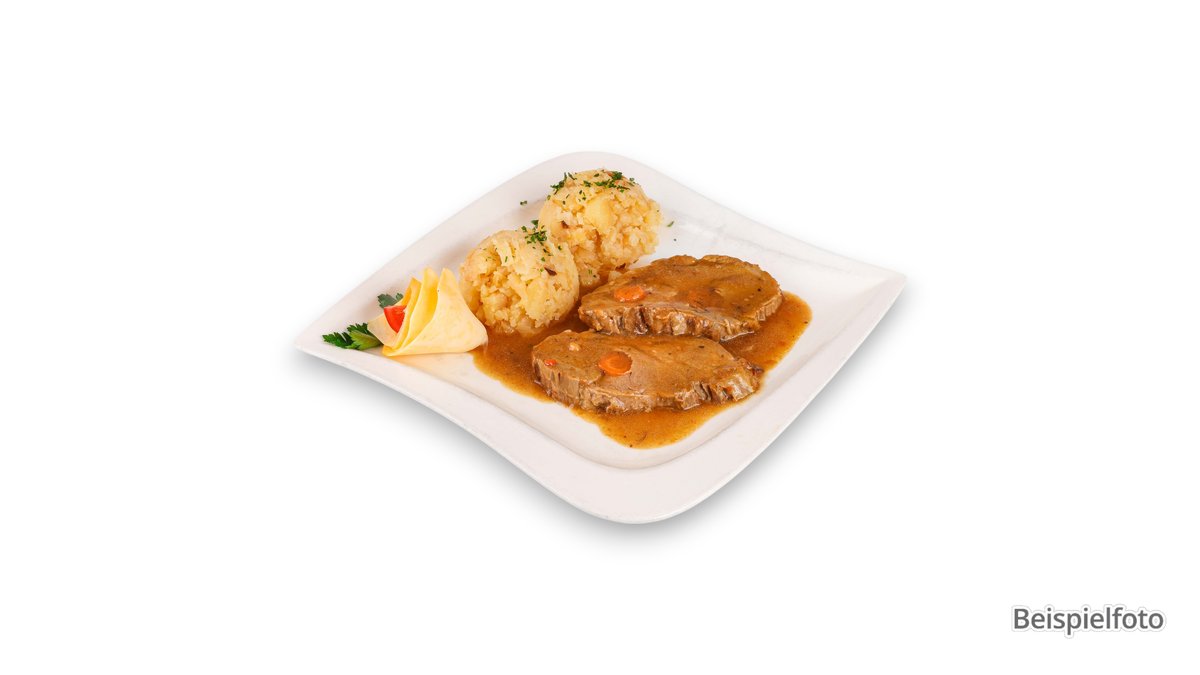 mit Kloß, Biersoße und einer Beilage deiner Wahl Enthält Alkohol, nicht geeignet für Kinder und Schwangere