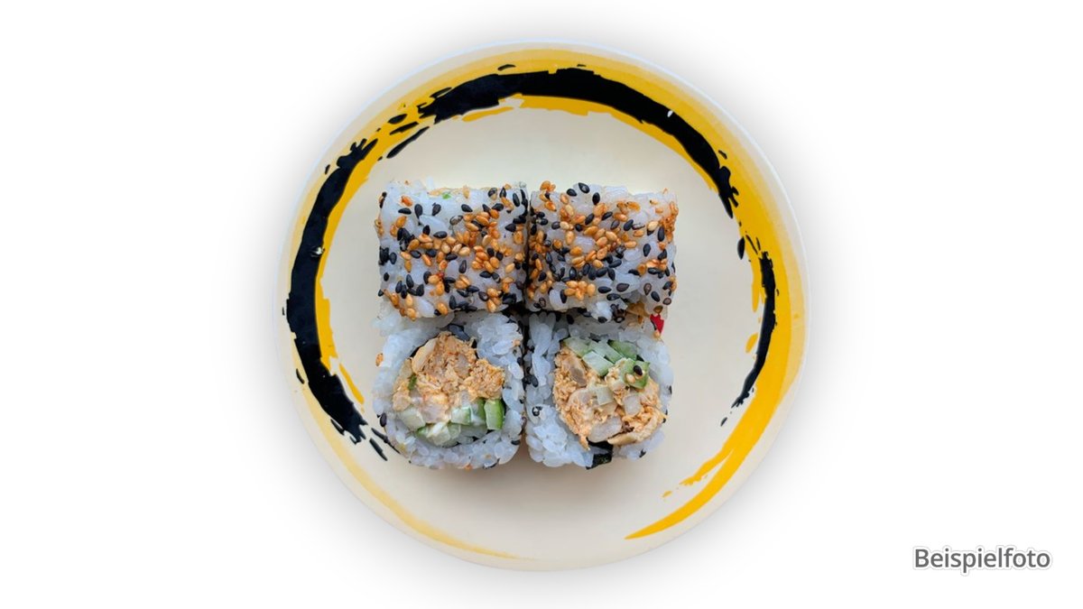 frittiertes Sushi mit Surimi, Philadelphia, Garnelen und einer Zutat deiner Wahl