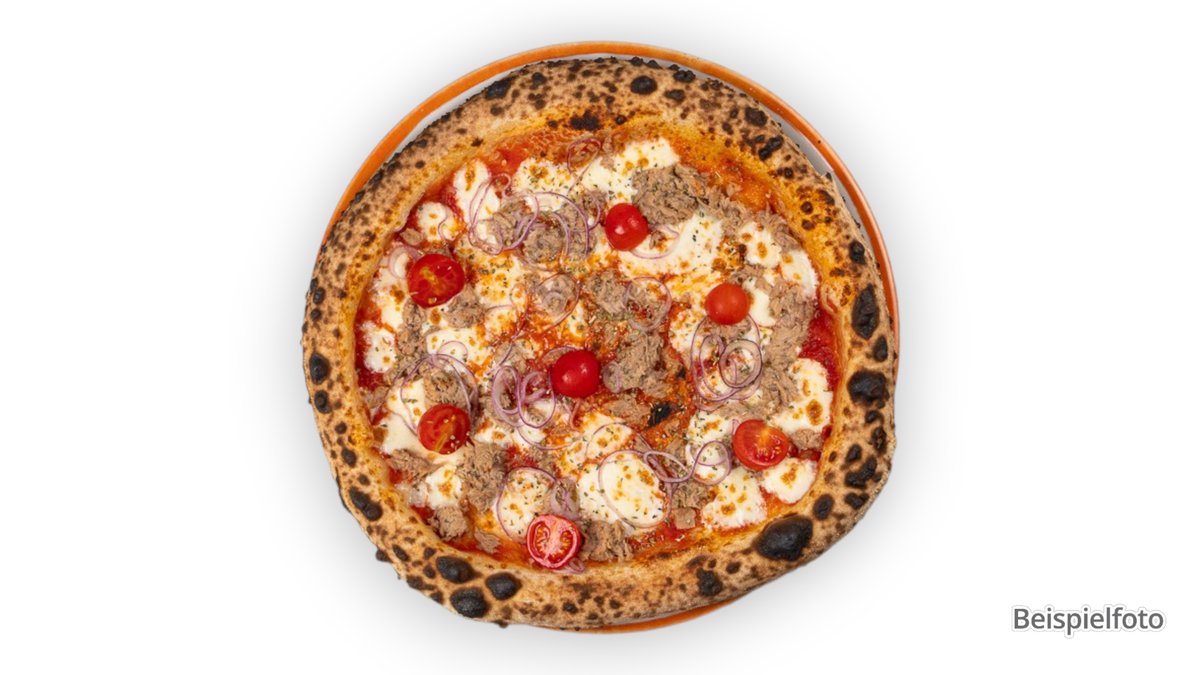 alle Pizzen werden in Größe von Ø 30 cm zubereitet und mit Tomatensoße und Mozzarella serviert