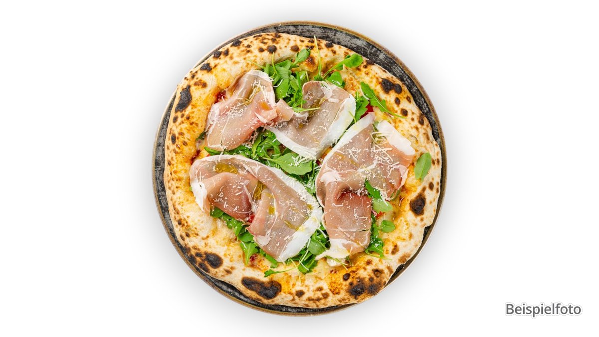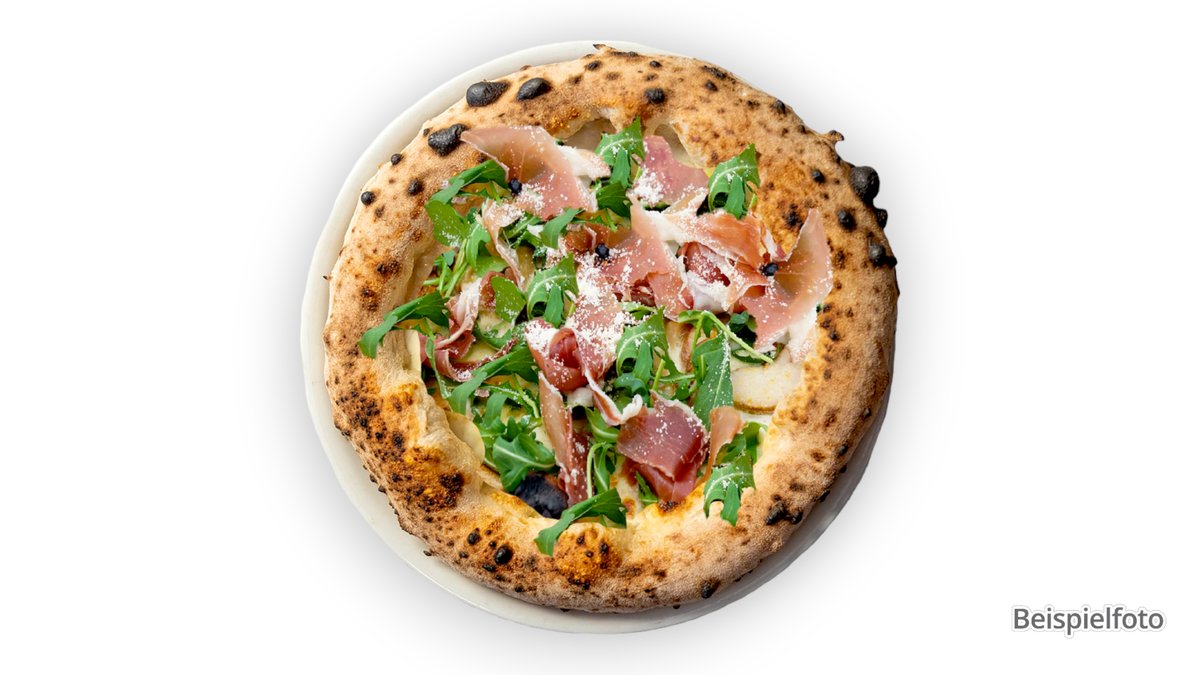 mit Parmaschinken, Rucola, Kirschtomaten und Parmesan