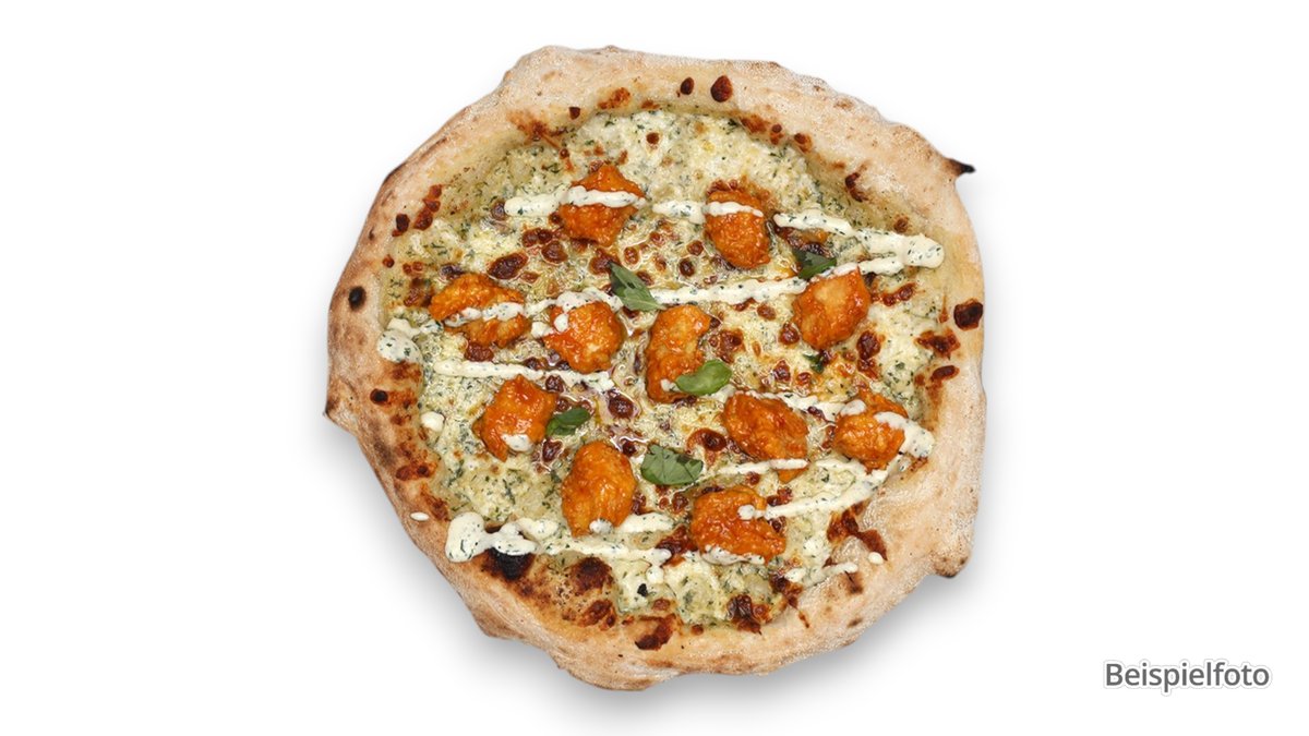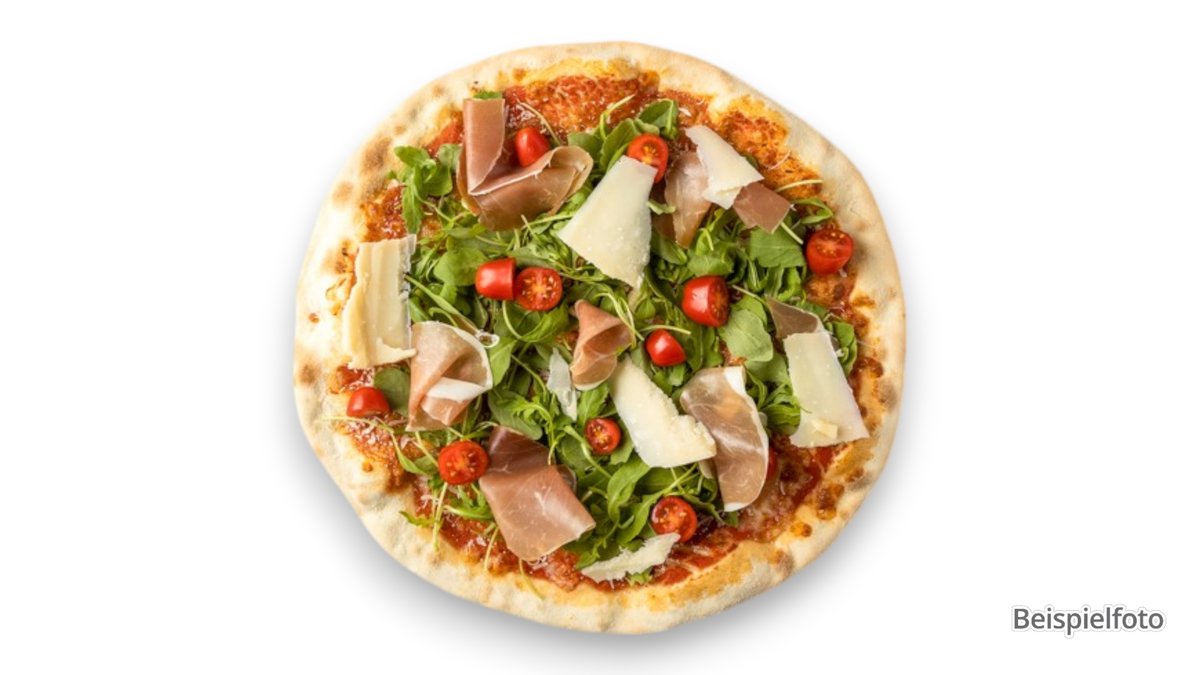 alle Pizzen werden in der Größe von 60x40 cm sowie mit Tomatensoße und Mozzarella zubereitet