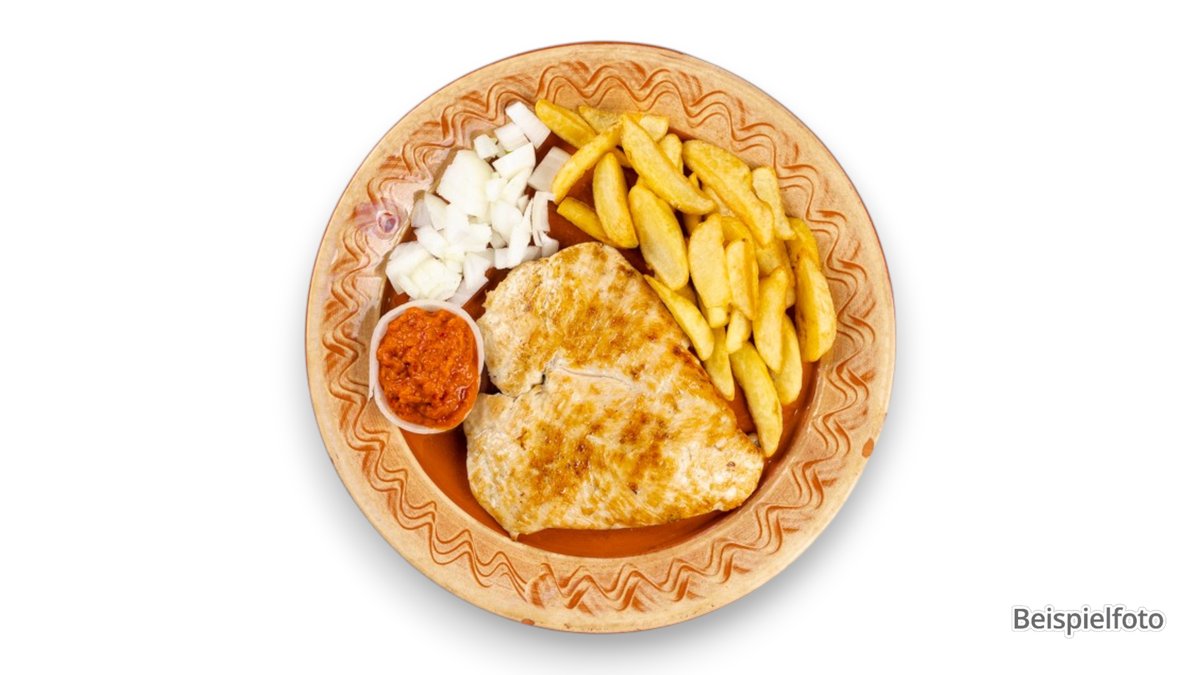 mit Pommes frites und einer Soße deiner Wahl