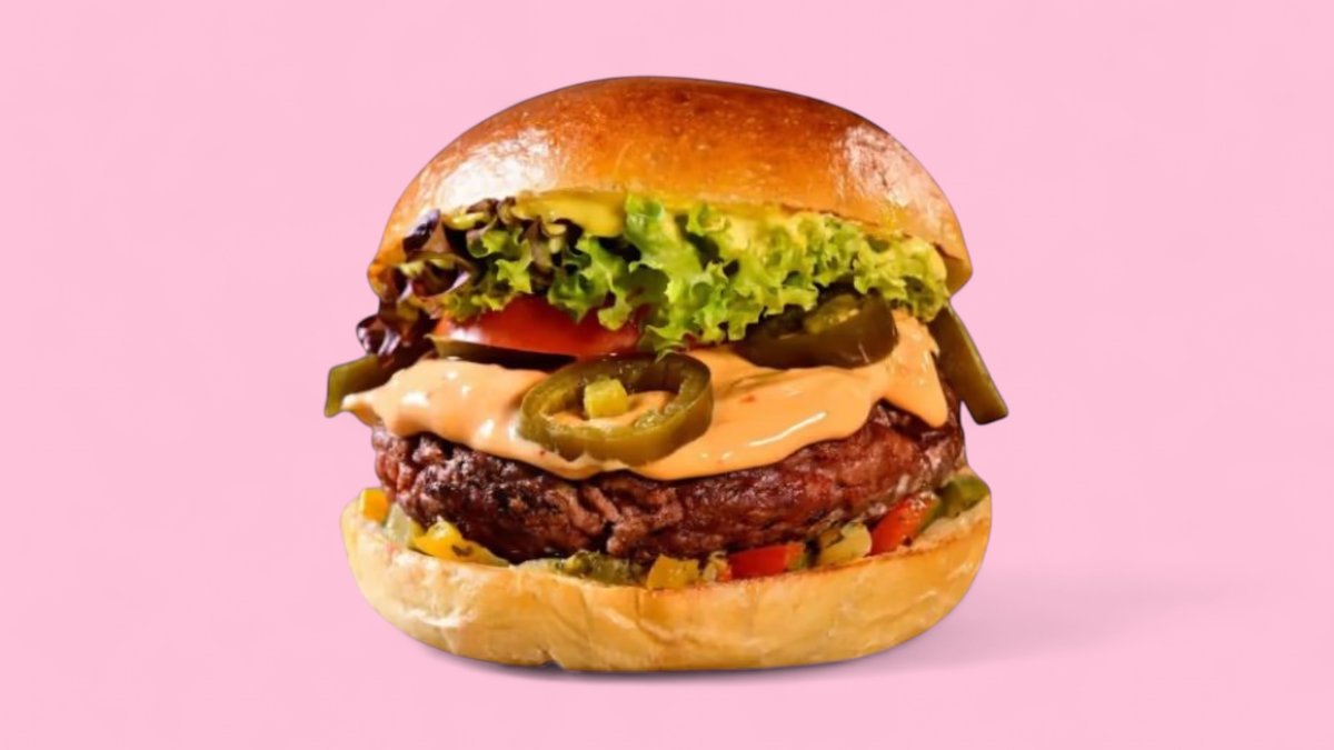 Rindfleisch-Patty, Cheddar, Jalapeños, scharfe Soße, Salat und Tomaten
