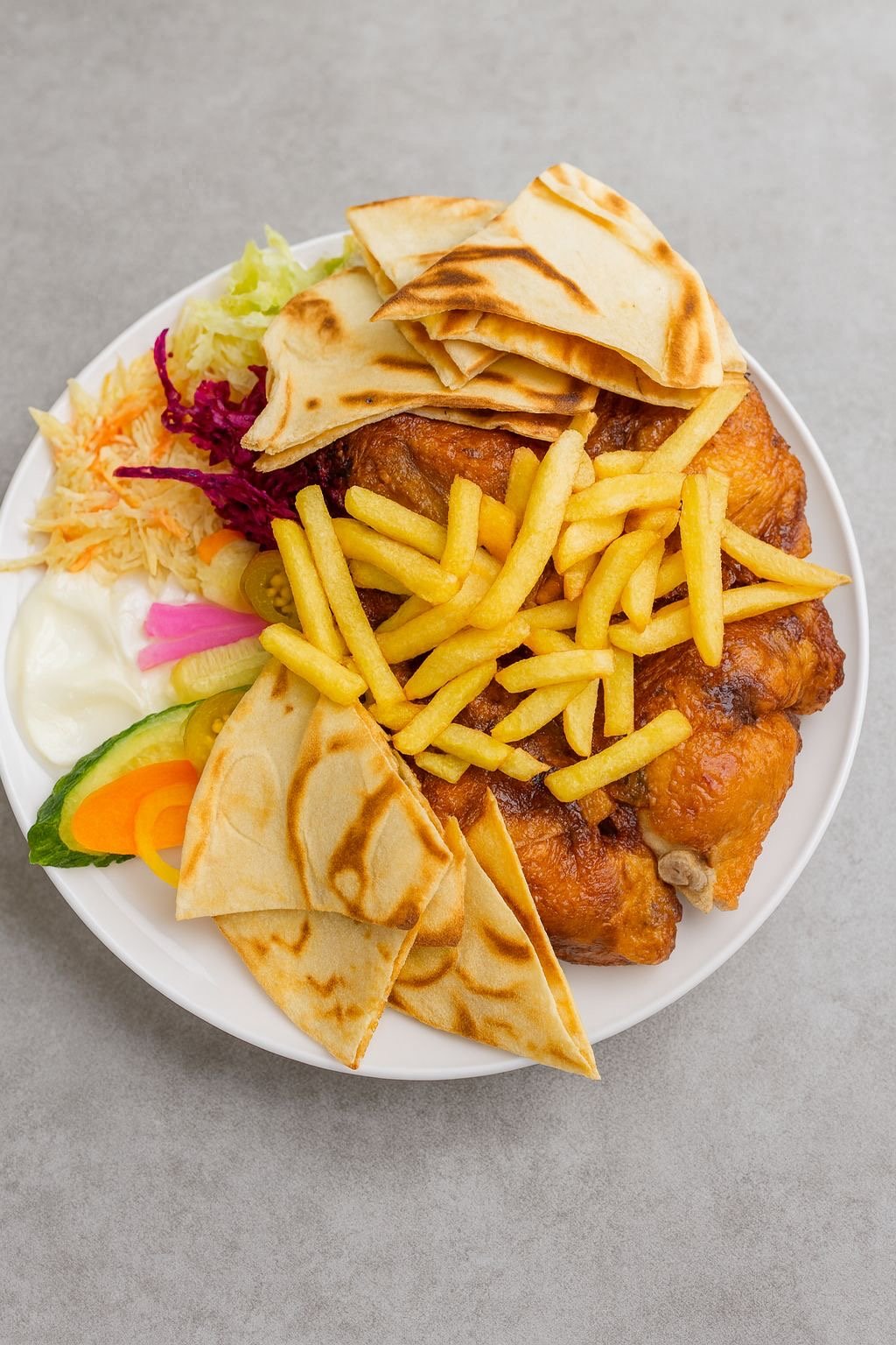 2 Schawarma im Fladenbrot mit Pommes frites und Salat