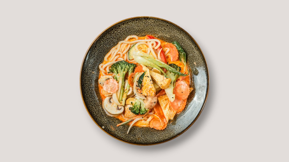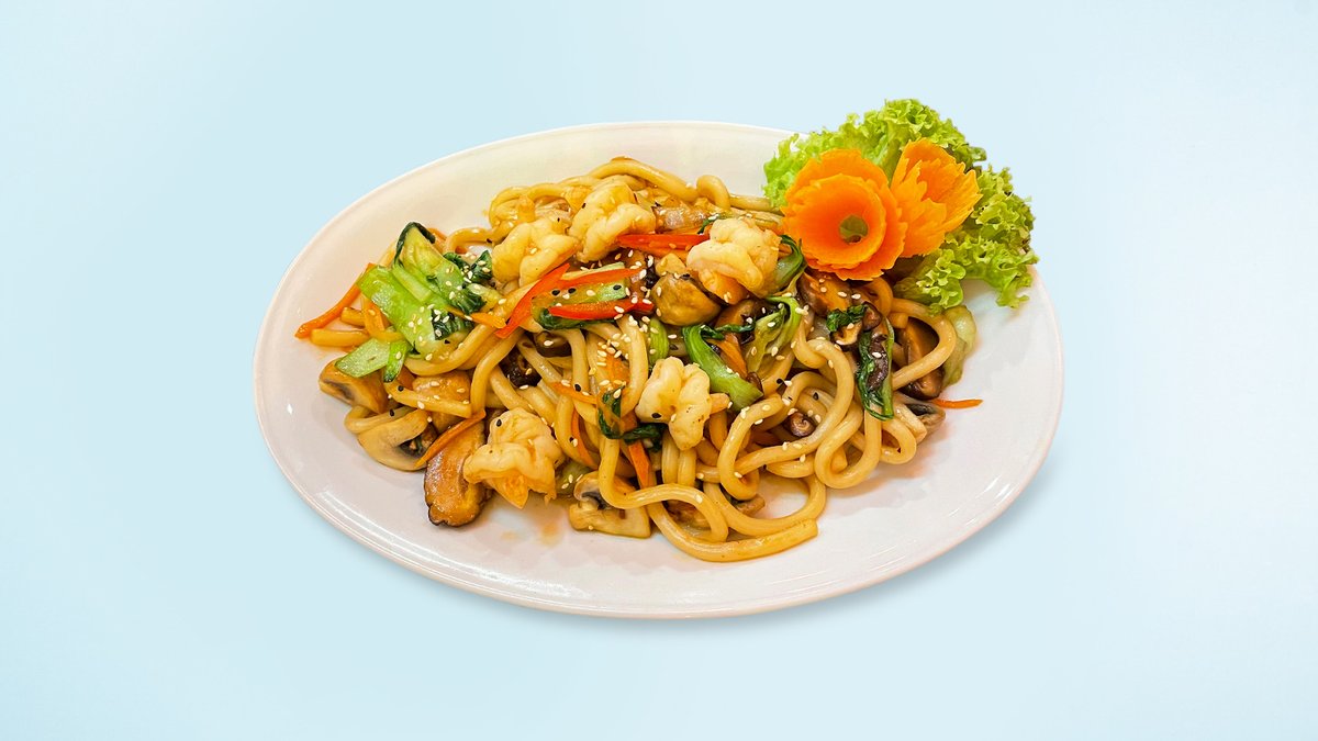 91. Udon Nudeln mit Tofu und verschiedenen Gemüse