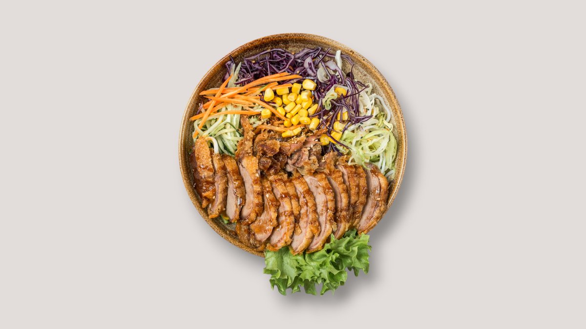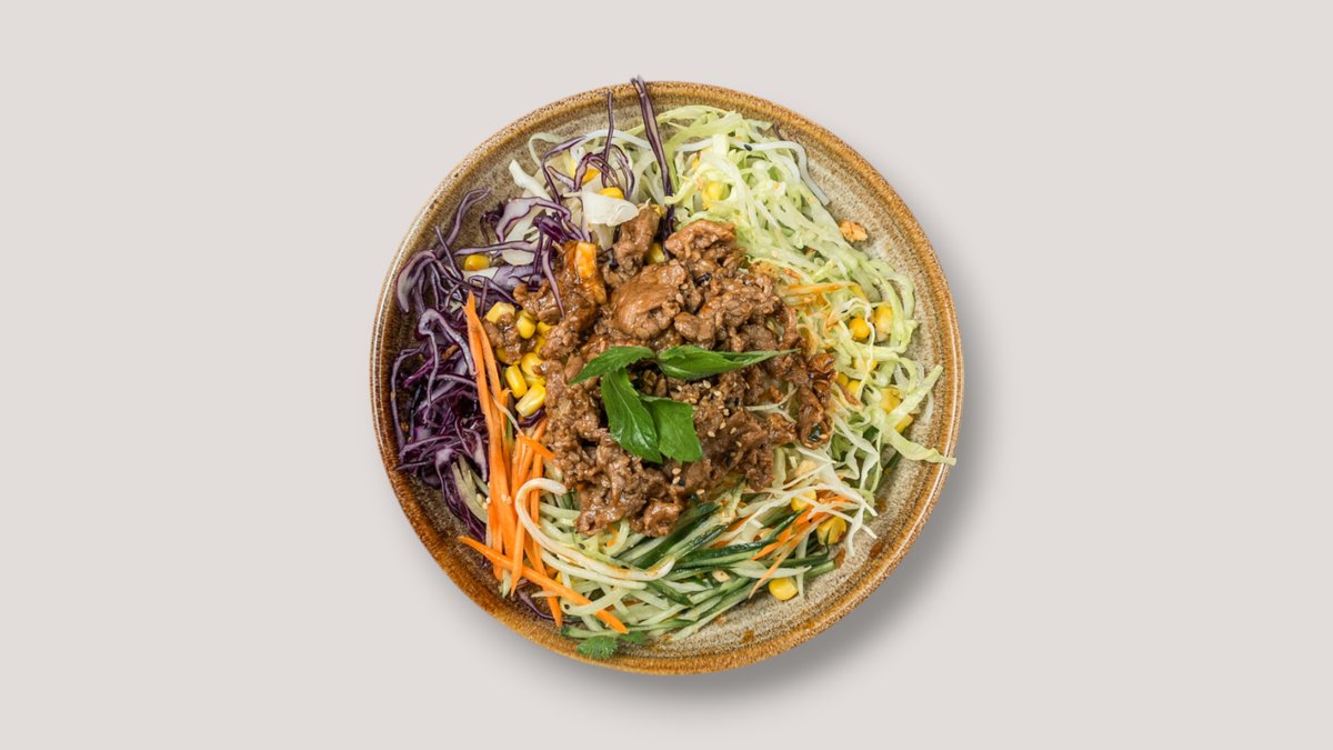 alle Gerichte werden mit Salat, Gurken, Paprika, Rotkohl, Karotten, Mais, Röstzwiebeln und Kräutern zubereitet