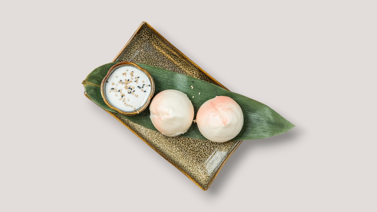 süßes Hefeklöẞchen, gefüllt mit roten Bohnen, Kokossoße und Erdnüssen