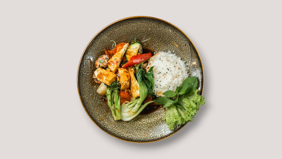 mit Tofu, Pilzen, frischem Gemüse, verfeinert mit frischen Kräutern