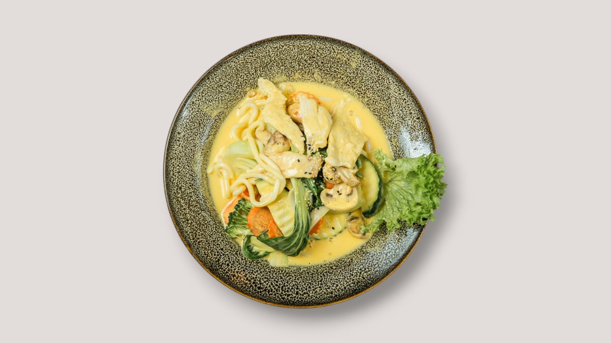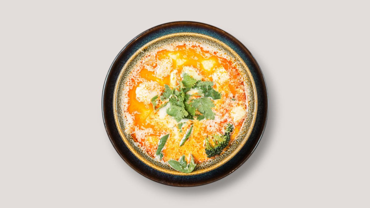 mit Kokosmilch, Hähnchen, Pilzen, Zitronengras, Zitronenblättern und Koriander