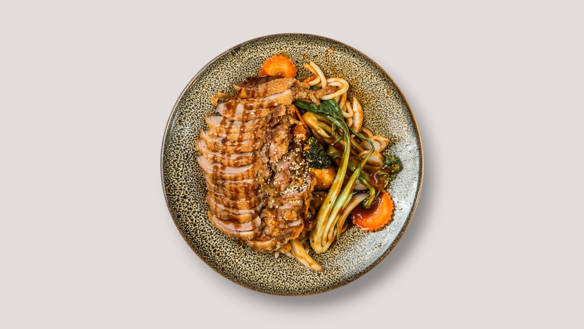 alle Gerichte werden mit Karotten, Zwiebeln, Brokkoli, Paprika, frischen Champignons, Sojasprossen, Zucchini und einer Soße deiner Wahl zubereitet