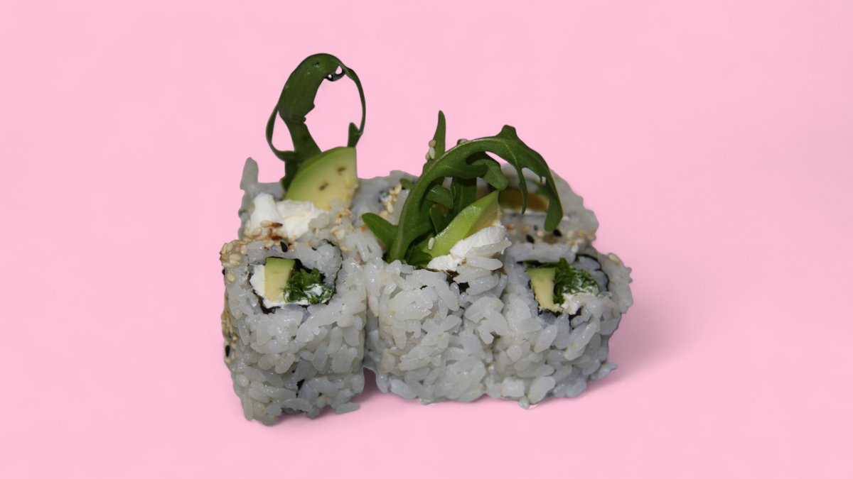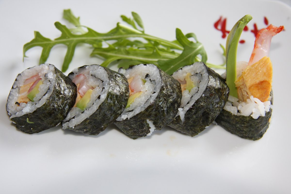 mit Avocadoroll, Spagelroll und Gurkenroll