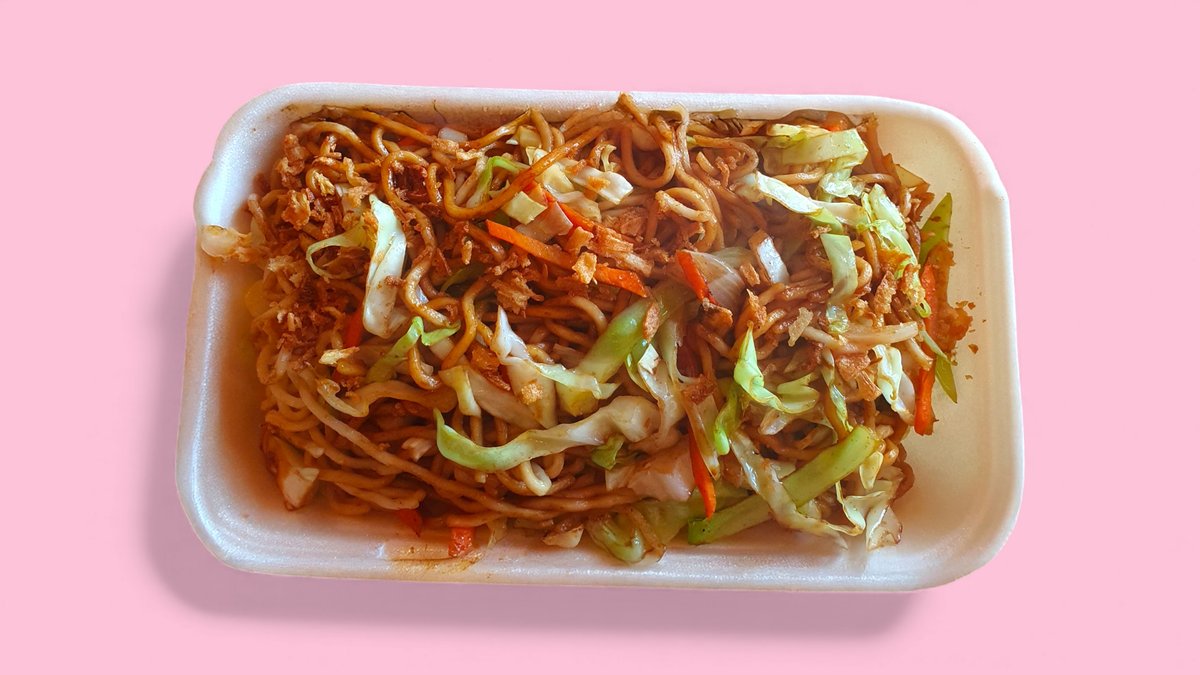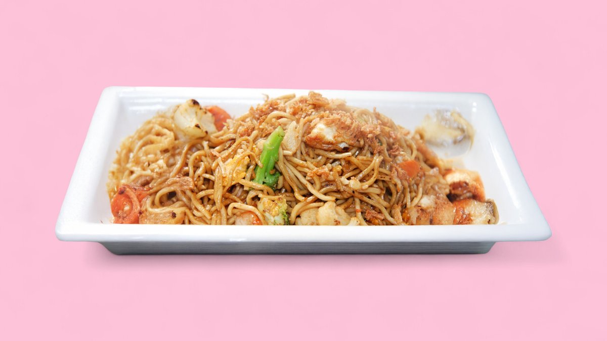 alle Gerichte werden mit gebratenen Nudeln, Eiern und Gemüse zubereitet