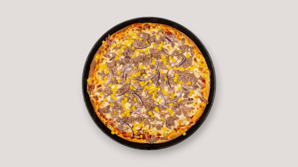 mit Oliven, Champignons, Mais, Zwiebeln, Tomaten und Peperoni