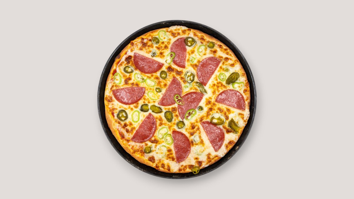 mit Chili, Peperoni, Jalapeños und Rindersalami