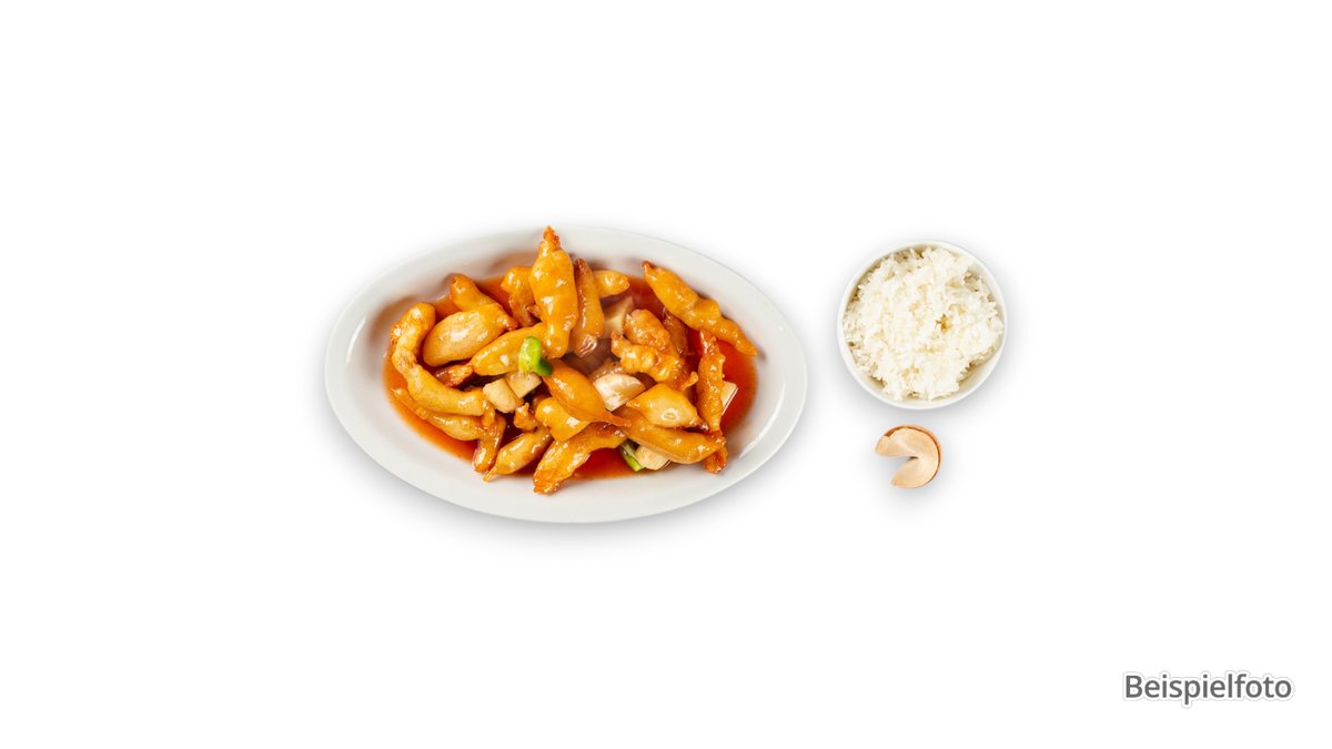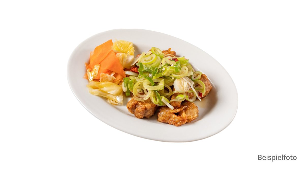 Hühnerbrust mit Ingwer, Knobblauch und Zwiebeln (scharf **)