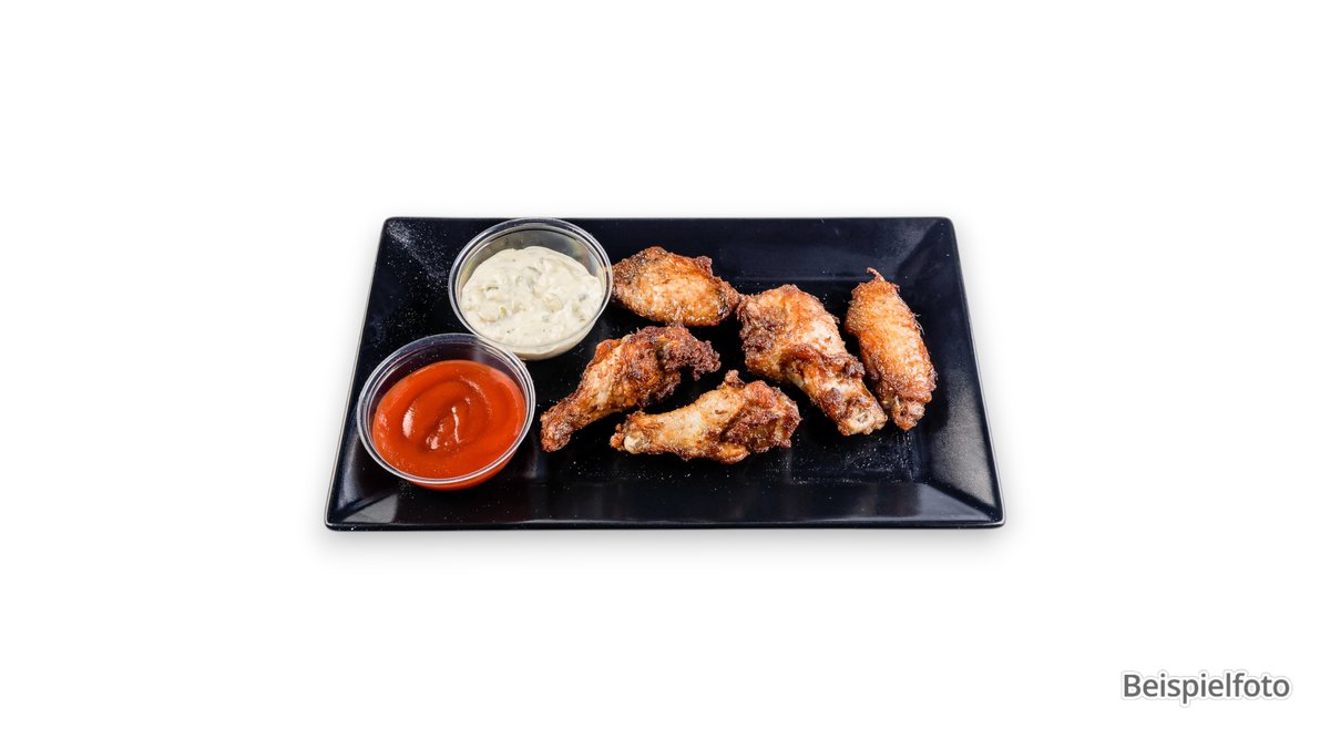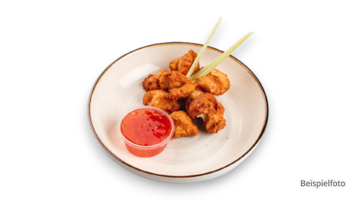 panierte Garnelen (5stk.) mit Asia-Kräutern und Hühner Saoße