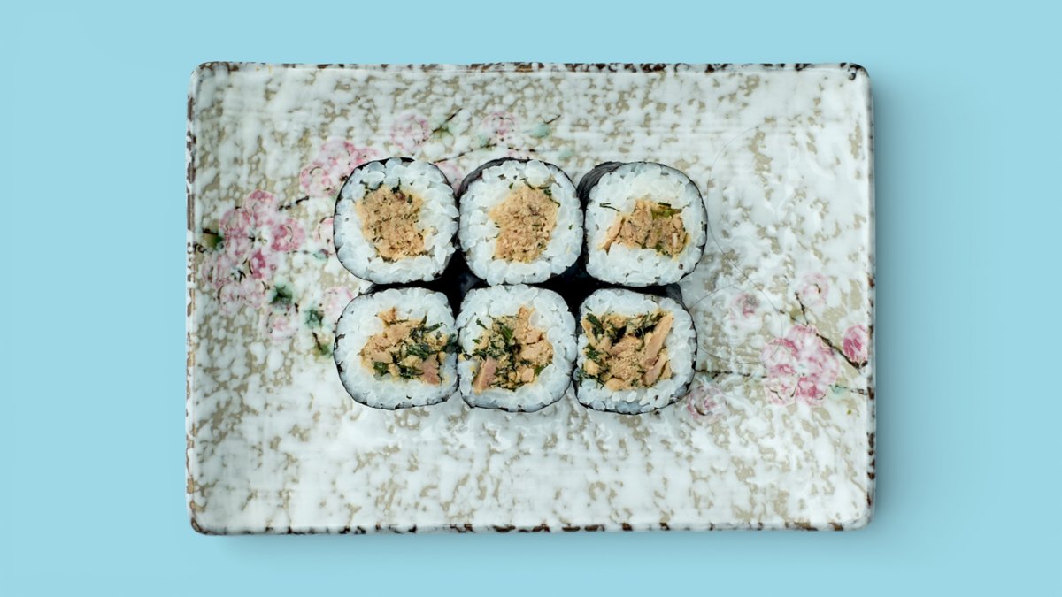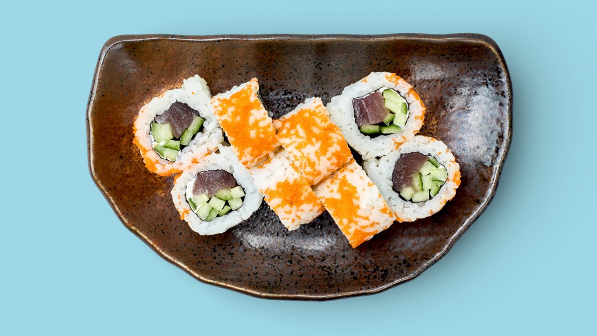 jede Portion enthält 8 Stück und wird mit Frischkäse und einer Zutat deiner Wahl zubereitet („407. Spicy Tuna Inside Out”, „408. Hot Spicy Inside Out” und „411. Ebi Gurin Inside Out” werden ohne Frischkäse zubereitet)