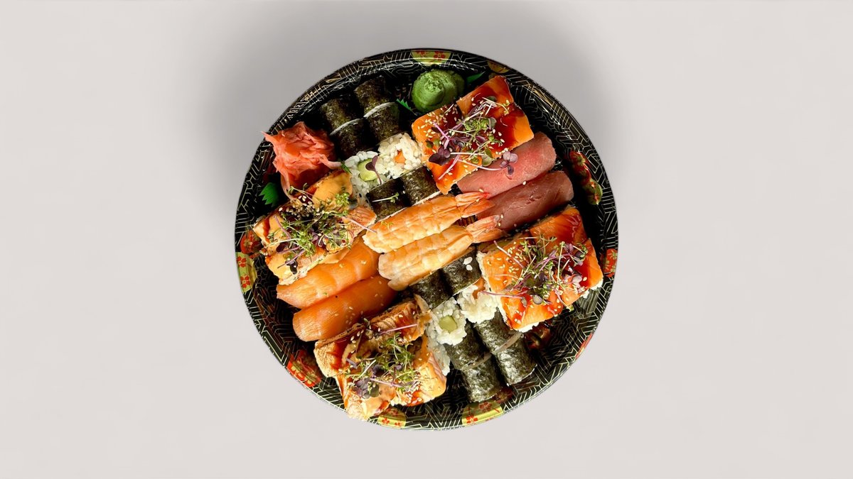 38 Stück 8x California Dream Rolls 8x Flamed California Dream Rolls 2x Sake Nigiri 2x Maguro Nigiri 2x Ebi Nigiri 8x Sake Maki 8x Kappa Maki