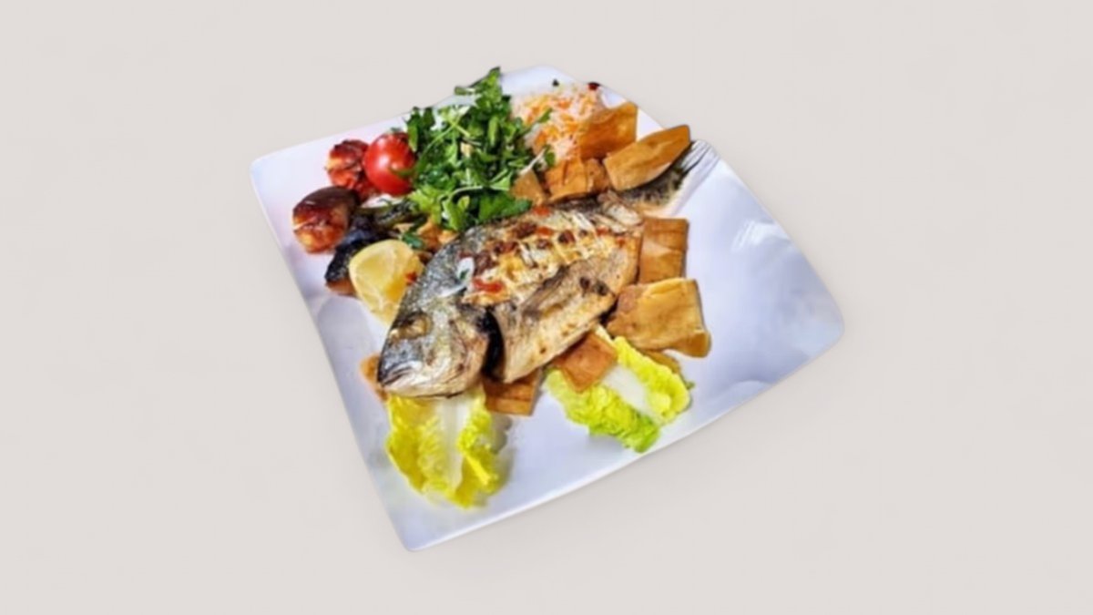 Genießen Sie unsere gegrillte Dorade, sorgfältig am Grill zubereitet für ein perfektes, rauchiges Aroma. Frisch & lecker!
