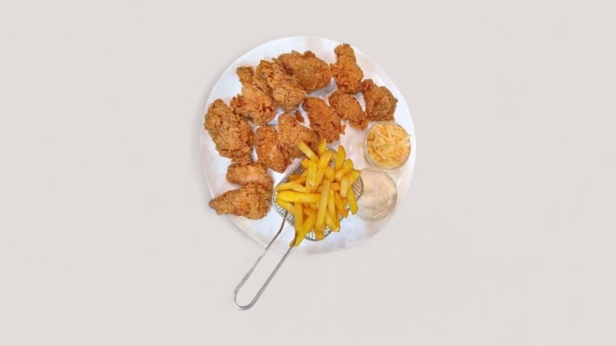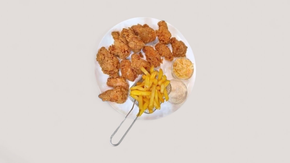 Unser Angebot 2 frittierte Hähnchenunterschenkel 2 frittierte Wings und ein leckeres Shawarma sandwich perfekt für alle die knuspriges Hähnchen lieben Freu dich auf zwei saftige knusprig frittierte Unterschenkel zwei goldbraun frittierte Wings und ein Shawarma Sandwich gefüllt mit zartem Hähnchenfleisch sauren Gurken und würziger Knoblauch Mayonnaise Dazu gibts einen Dip Deiner Wahl Alles wird frisch für Dich frittiert und aus besten Zutaten zubereitet Ideal für ein schnelles Essen oder einfach zum Genießen zwischendurch Bestelle jetzt und gönn Dir dieses köstliche Angebot