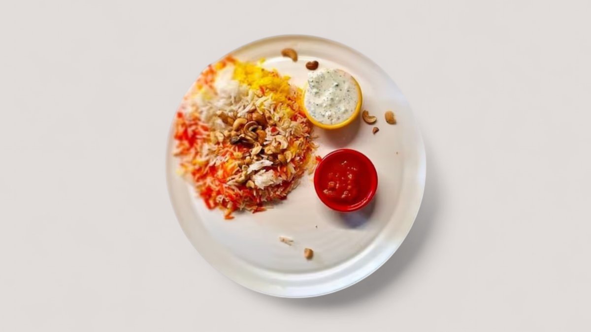 Mandi Reis - serviert mit cremigem Joghurt und würziger scharfer Soße. Einfach, aber köstlich.