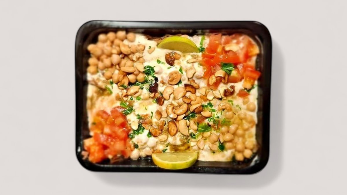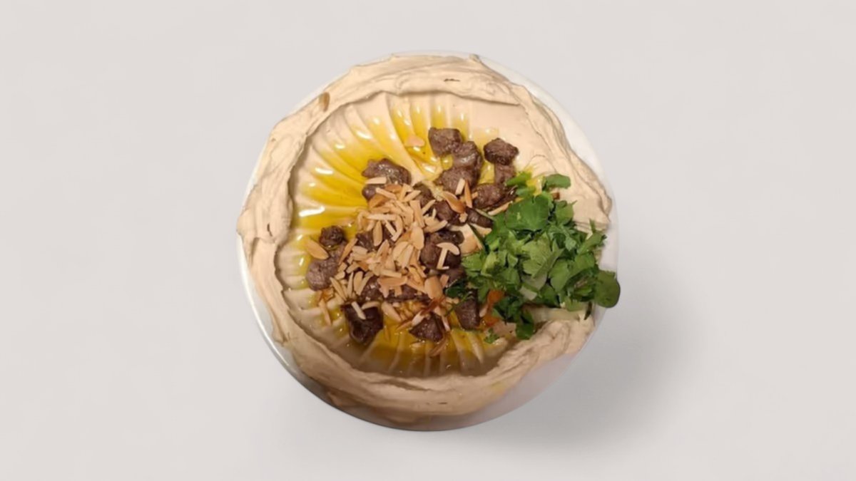 Hummus mit Fleisch ist ein leckeres Gericht, das aus cremigem, hausgemachtem Hummus und gewürfeltem, saftigem Fleisch besteht, das mit aromatischen Gewürzen wie Kreuzkümmel, Paprika und Knoblauch zubereitet wird. Es ist oft mit frischen Tomaten, Gurken, Zwiebeln und Petersilie garniert und wird mit warmem Pita-Brot oder Fladenbrot serviert. Hummus mit Fleisch ist eine herzhafte und befriedigende Mahlzeit, die sowohl als Vorspeise als auch als Hauptgericht serviert werden kann. Bestelle jetzt und genieße den köstlichen Geschmack von Hummus mit Fleisch bei dir zu Hause