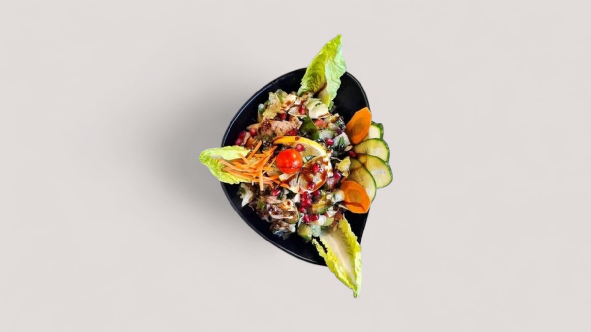 Unser Fattusch ist ein knackiger Salat aus gehacktem Gemüse wie Tomaten, Gurken und Radieschen, der mit knusprigen Brotstückchen und einer leckeren Dressing aus Zitronensaft, Olivenöl und Sumach gewürzt wird. Dieser Salat hat einen erfrischenden und aromatischen Geschmack und eignet sich perfekt als Beilage oder als leichte Mahlzeit. Unsere Fattusch wird täglich frisch zubereitet und ist garantiert frei von künstlichen Aromen oder Zusatzstoffen. Bestelle jetzt und lass dir diesen köstlichen Salat direkt nach Hause liefern