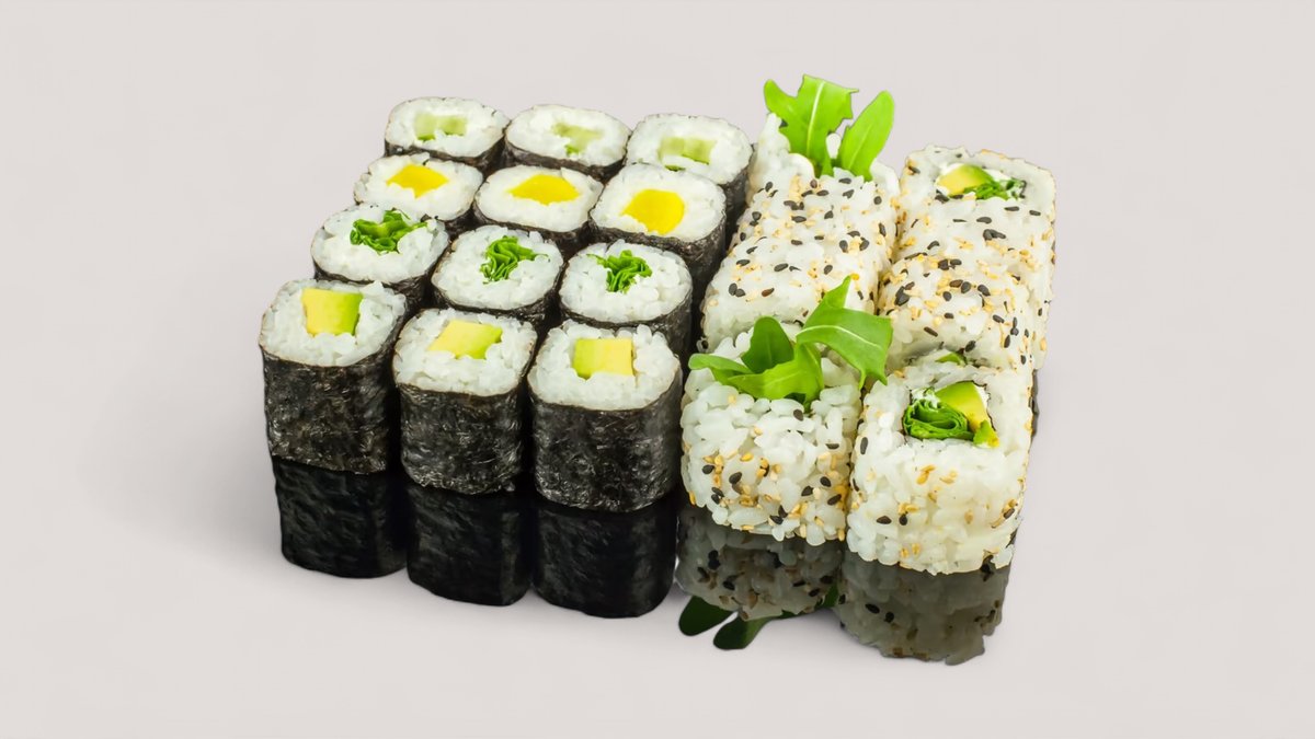 3x Maki Rucola 3x Maki Avocado 3x Maki Oshinko 3x Maki Kappa 8x Rucola Rolls Inside Out