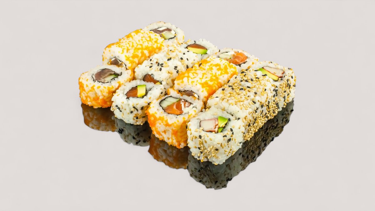 4x California Rolls mit Sesam 4x Alaska Rolls mit Sesam 4x Philadelphia Rolls mit Masago 4x Tekka Rolls mit Masago